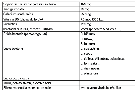 Combination of Bioprocessing (Fermentation) , Antioxidants, and Probiotics, which stimulate Immun-Function and regulate disbalanced Bowel Flora.